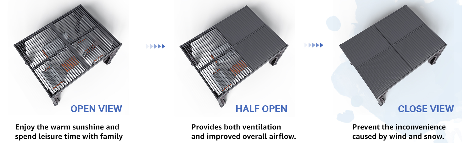 Customized Garden Electric Retractable Roof Bioclimatic Pergola Outdoor Aluminum Pergola with Sliding Glasse Images |